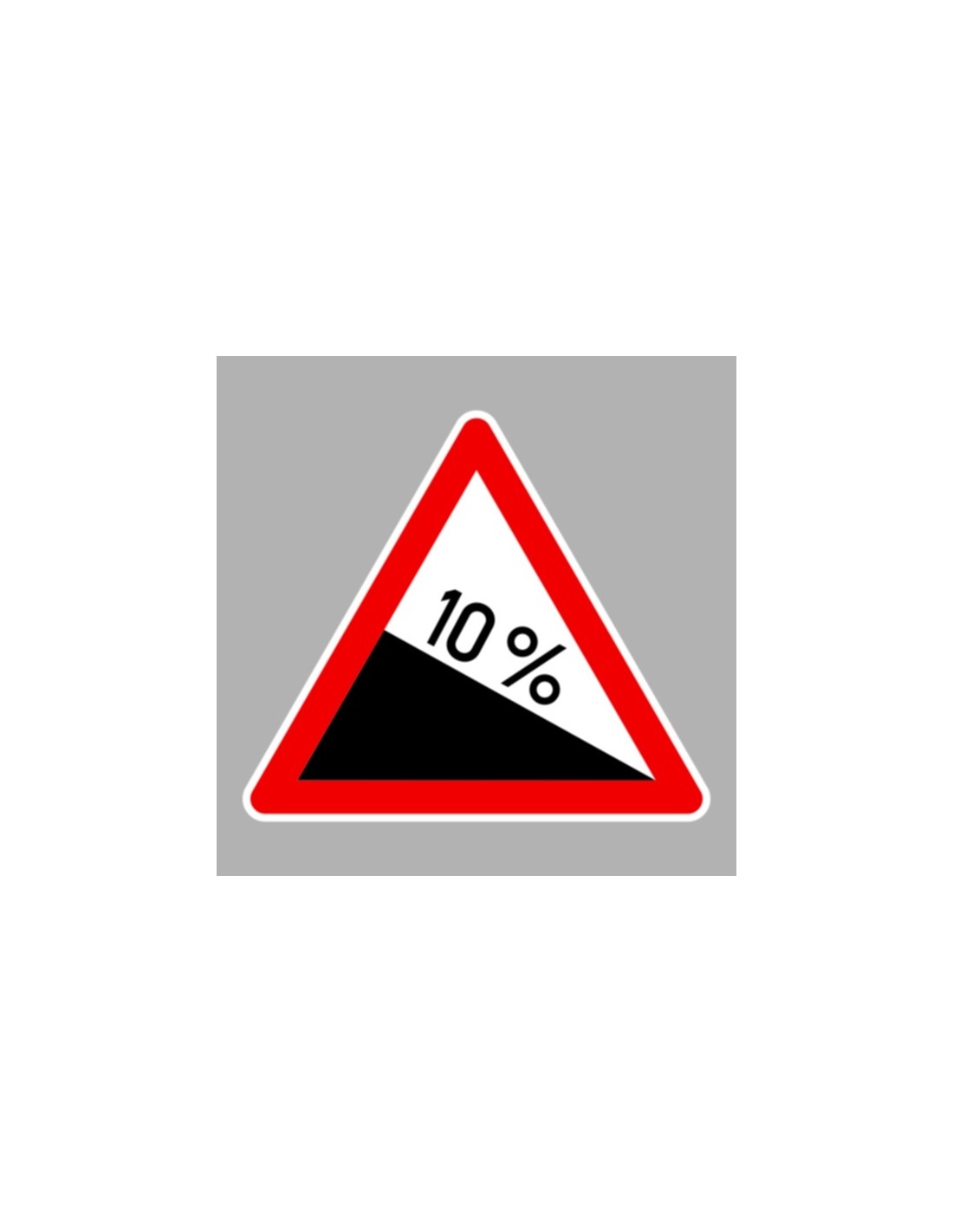 A tábla testreszabható, a lejtő százalékos értékét a vásárló adhatja meg, így pontosan jelezhető a lejtő meredeksége. Alkalmas utak, parkolók és ipari területek veszélyes lejtőinek jelzésére.