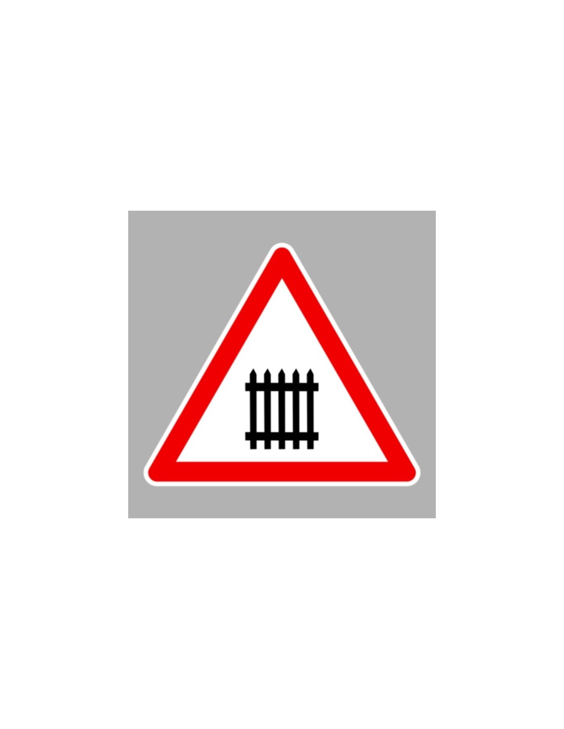 A sorompóval biztosított vasúti átjáró tábla figyelmeztet a vasúti átjáró közelgő sorompójára. Különböző méretekben és fényvisszaverő fóliákkal elérhető.