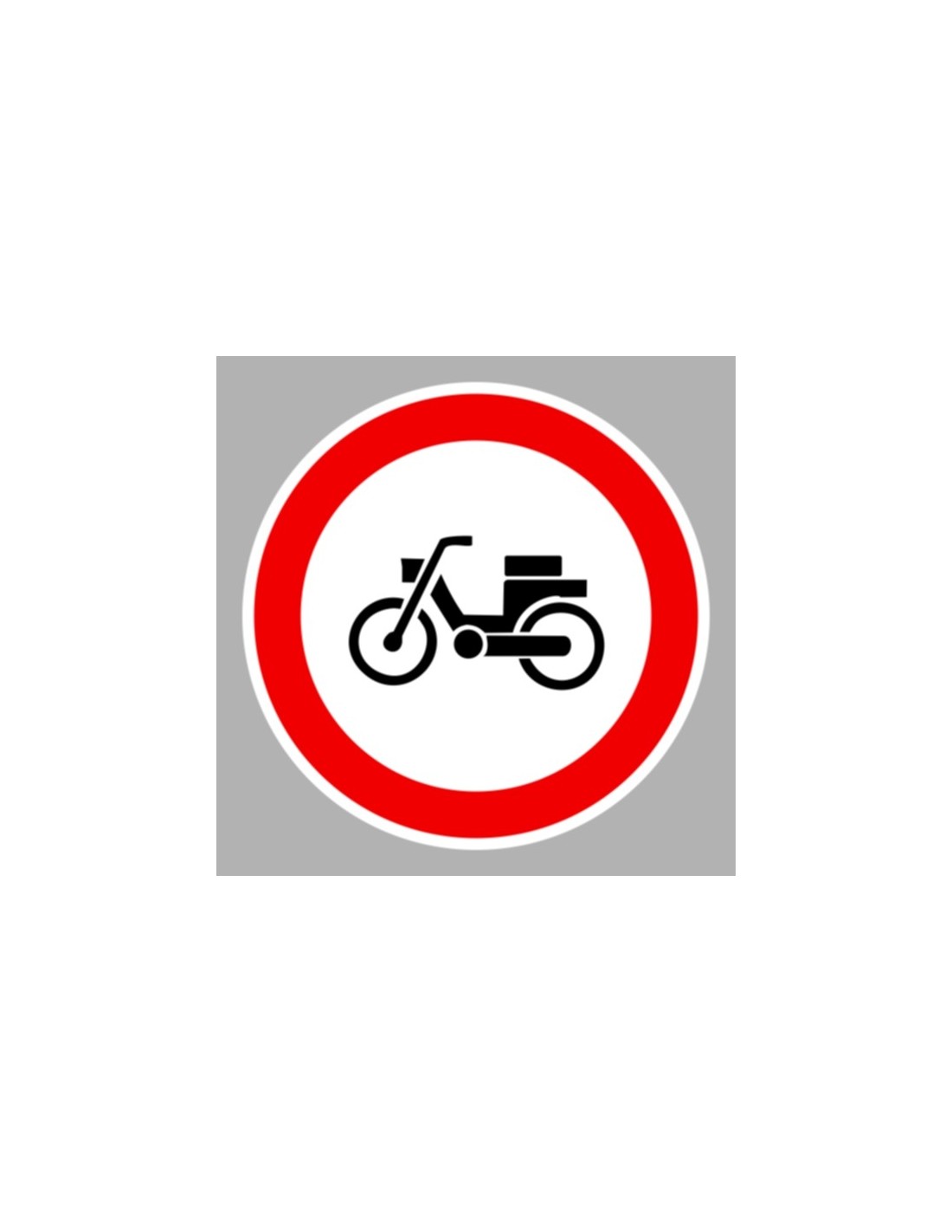 A segédmotoros kerékpárral behajtani tilos tábla jelzi, hogy ezen járművek nem léphetnek be a megjelölt területre. Több méretben és anyagban elérhető, fényvisszaverő fóliával is.