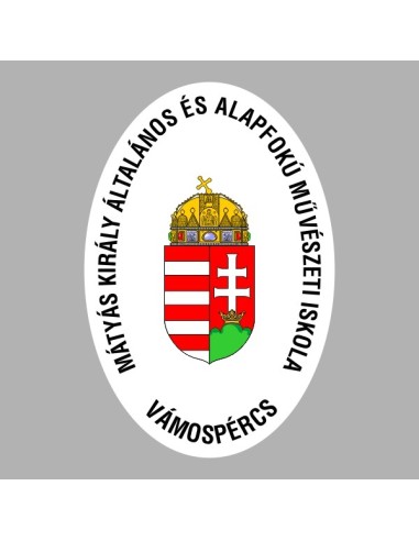 Fóliára digitális nyomtatással készült címer és szöveg.