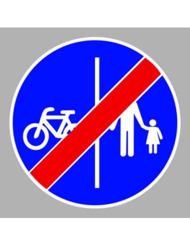 Gyalog- és kerékpárút vége (osztott, a gyalogos jobbról)