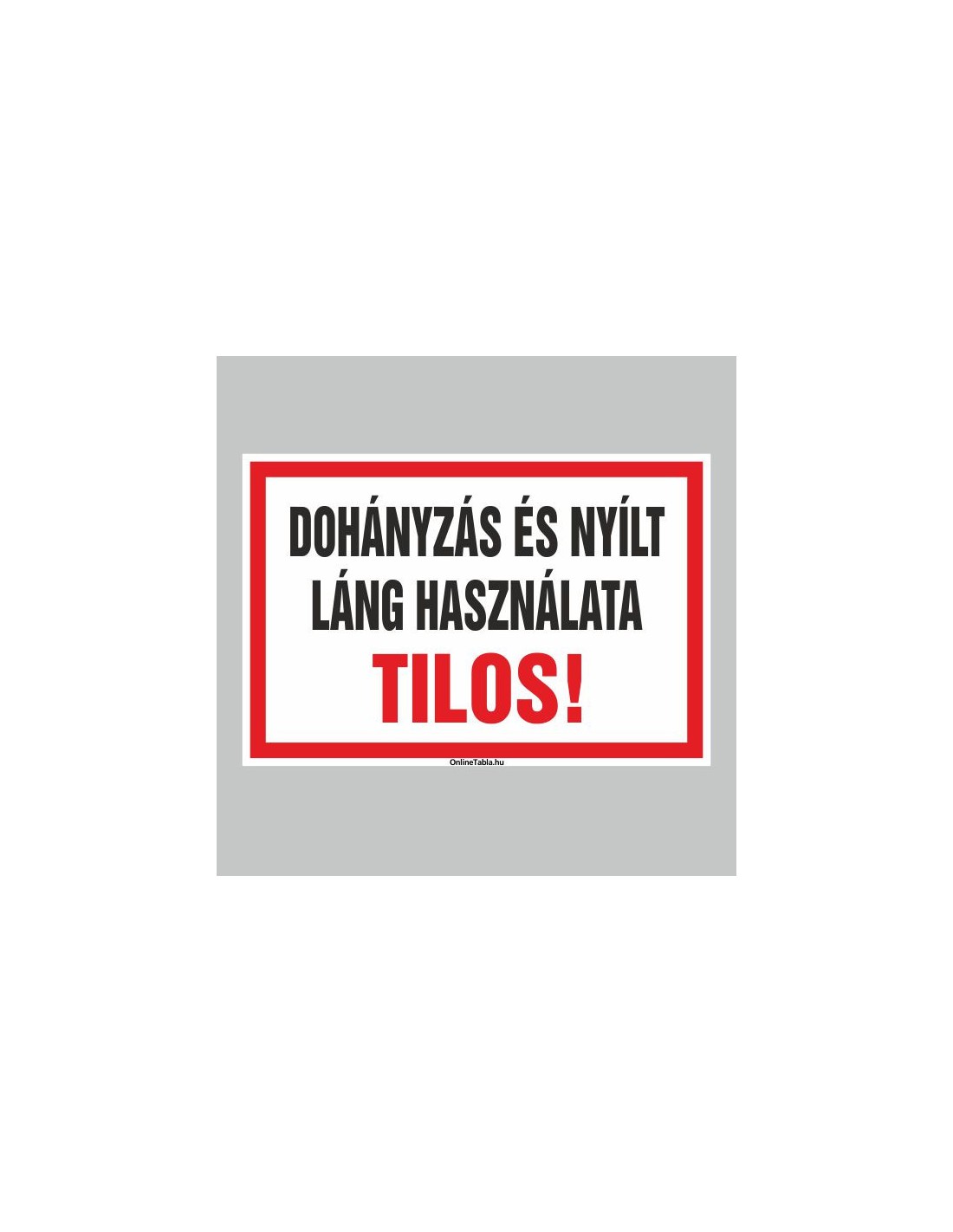 A tábla egyértelműen jelzi a dohányzás és nyílt láng használatának tilalmát. Többféle anyagból és méretben elérhető.