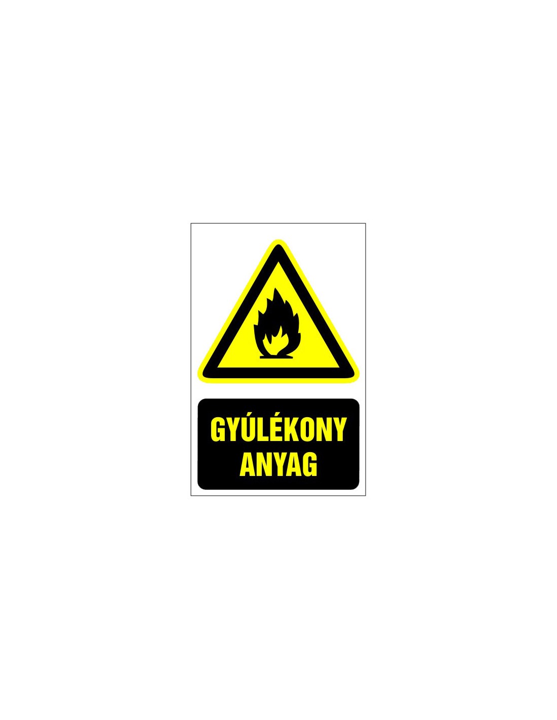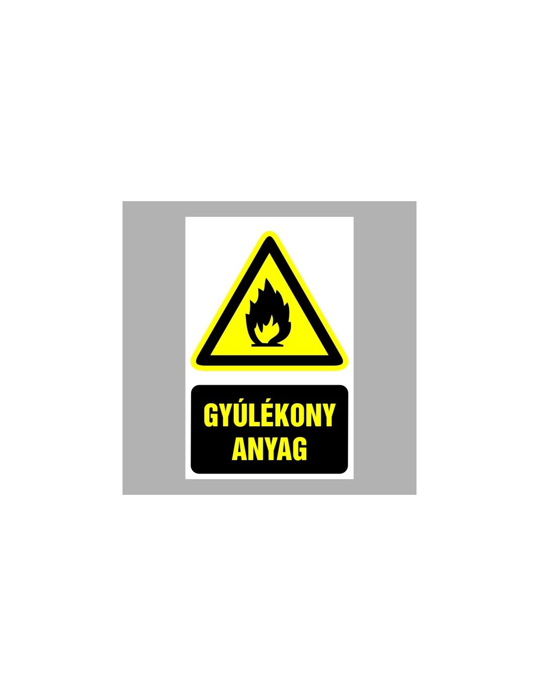 A gyúlékony anyag piktogram szöveggel egyértelmű figyelmeztetést nyújt a tűzveszélyre. Többféle anyagból és méretben elérhető a különböző környezeti igényekhez.
