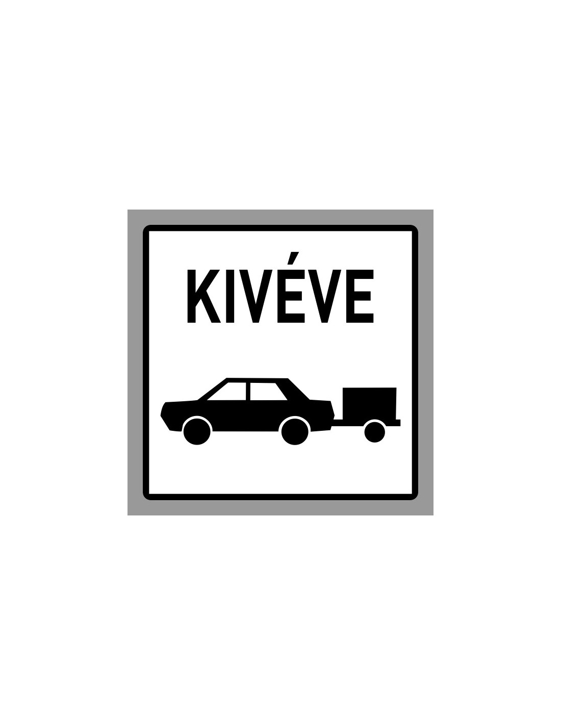 A Kivéve Utánfutós Személygépkocsi kiegészítő jelzőtábla célja, hogy az alapjelzőtáblák jelentését pontosítsa, különösen az utánfutós személygépkocsikra vonatkozóan. A tábla 35x35 cm méretű, és 3 mm vastag szendvicslemezből készül, amely két alumínium rétegből és egy műanyag magból áll. Többféle fóliával érhető el, például HIP fényvisszaverő fóliával (RA2 osztály), EG fényvisszaverő fóliával (RA1 osztály) vagy alap fóliával, amely nem fényvisszaverő.