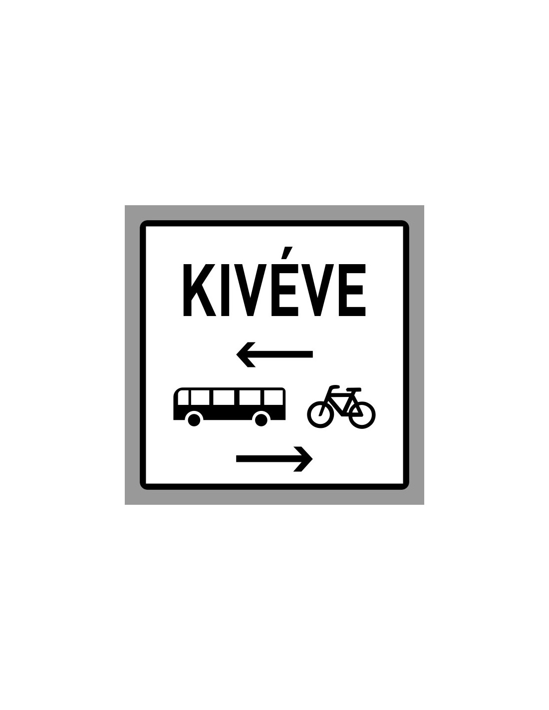 A kiegészítő jelzőtábla a kétirányú autóbusz és kerékpáros forgalmat jelzi keresztirányban. 35x35 cm méretű, különböző fényvisszaverő fóliákkal elérhető.