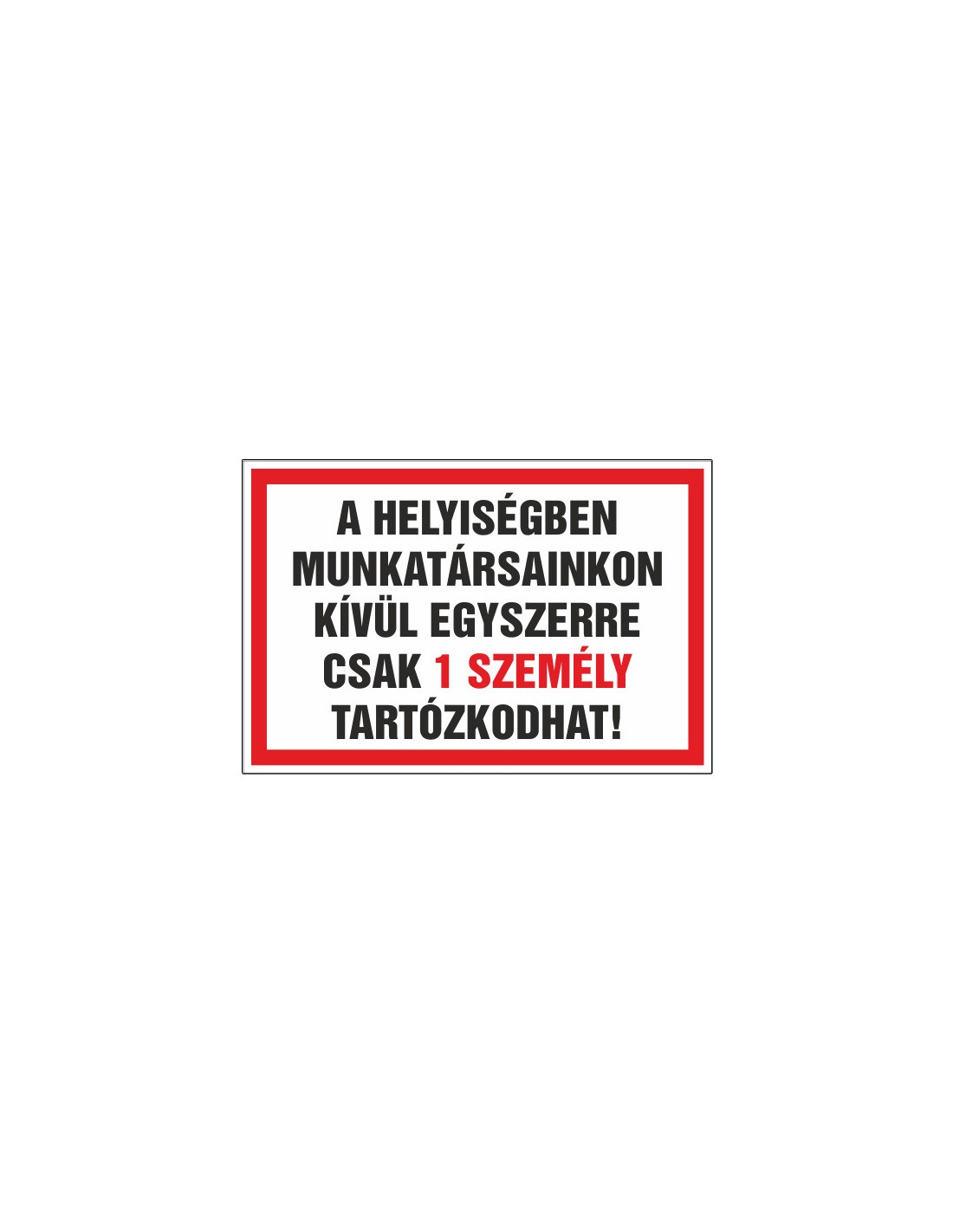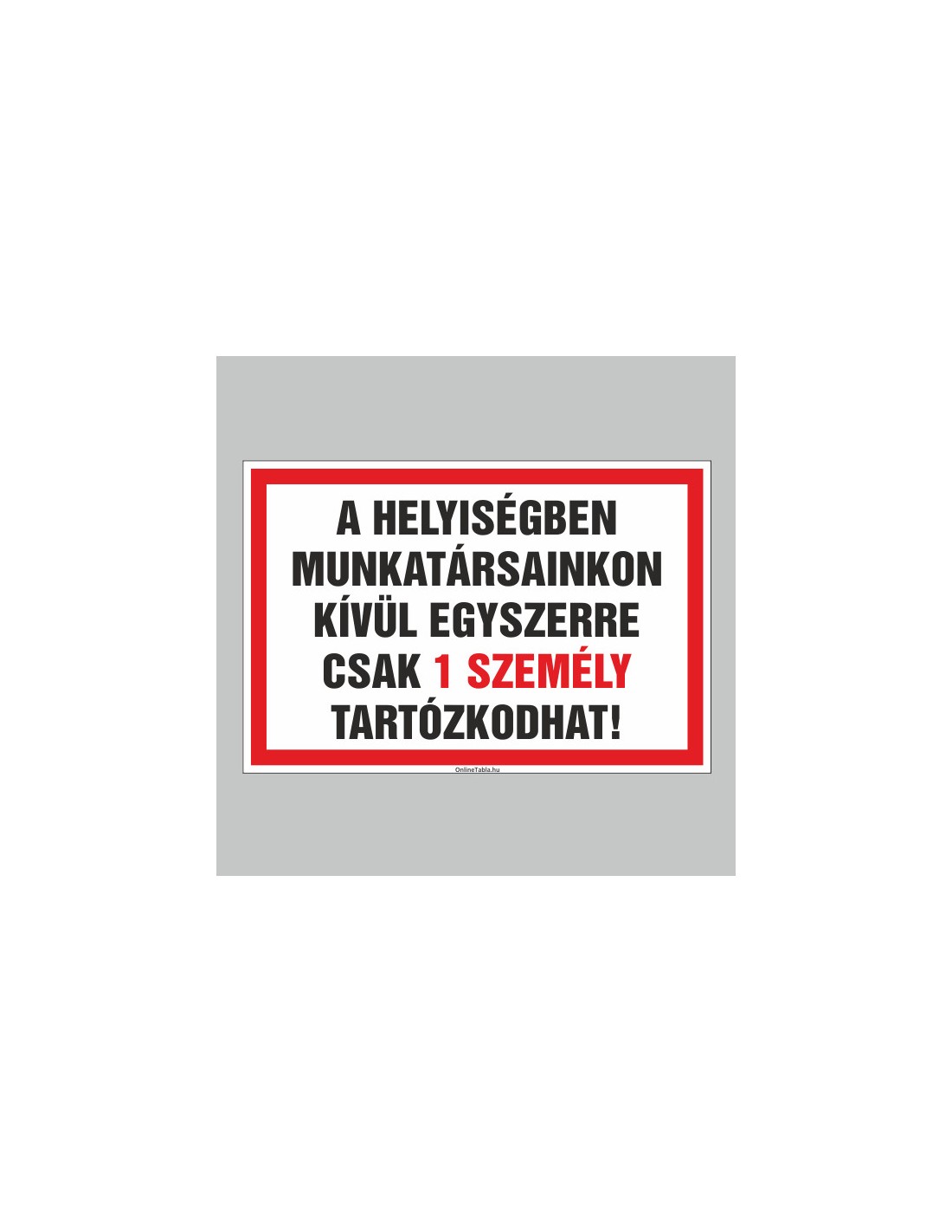 Figyelmeztető és tiltó matricák, táblák, - Koronavírus, Fertőzések tábla - A HELYISÉGBEN MUNKATÁRSAINKON KÍVÜL EGYSZERRE CSAK 1