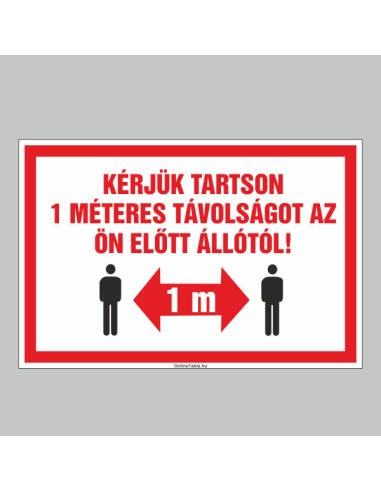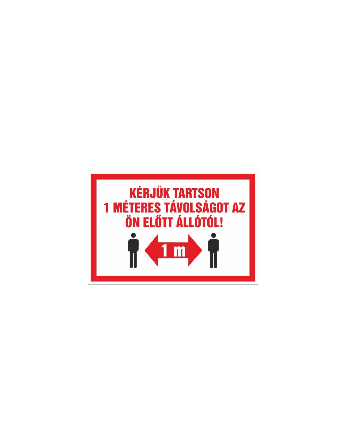 Figyelmeztető és tiltó matricák, táblák, - Koronavírus, Fertőzések tábla - KÉRJÜK TARTSON 1 MÉTERES TÁVOLSÁGOT AZ  ÖN ELÕTT ÁLLÓ