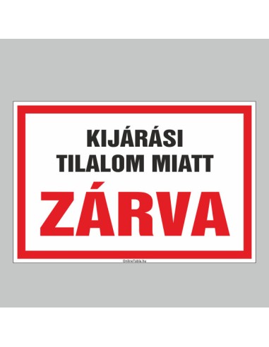 Figyelmeztető és tiltó matricák, táblák, - Koronavírus, Fertőzések tábla - KIJÁRÁSI TILALOM MIATT ZÁRVA
