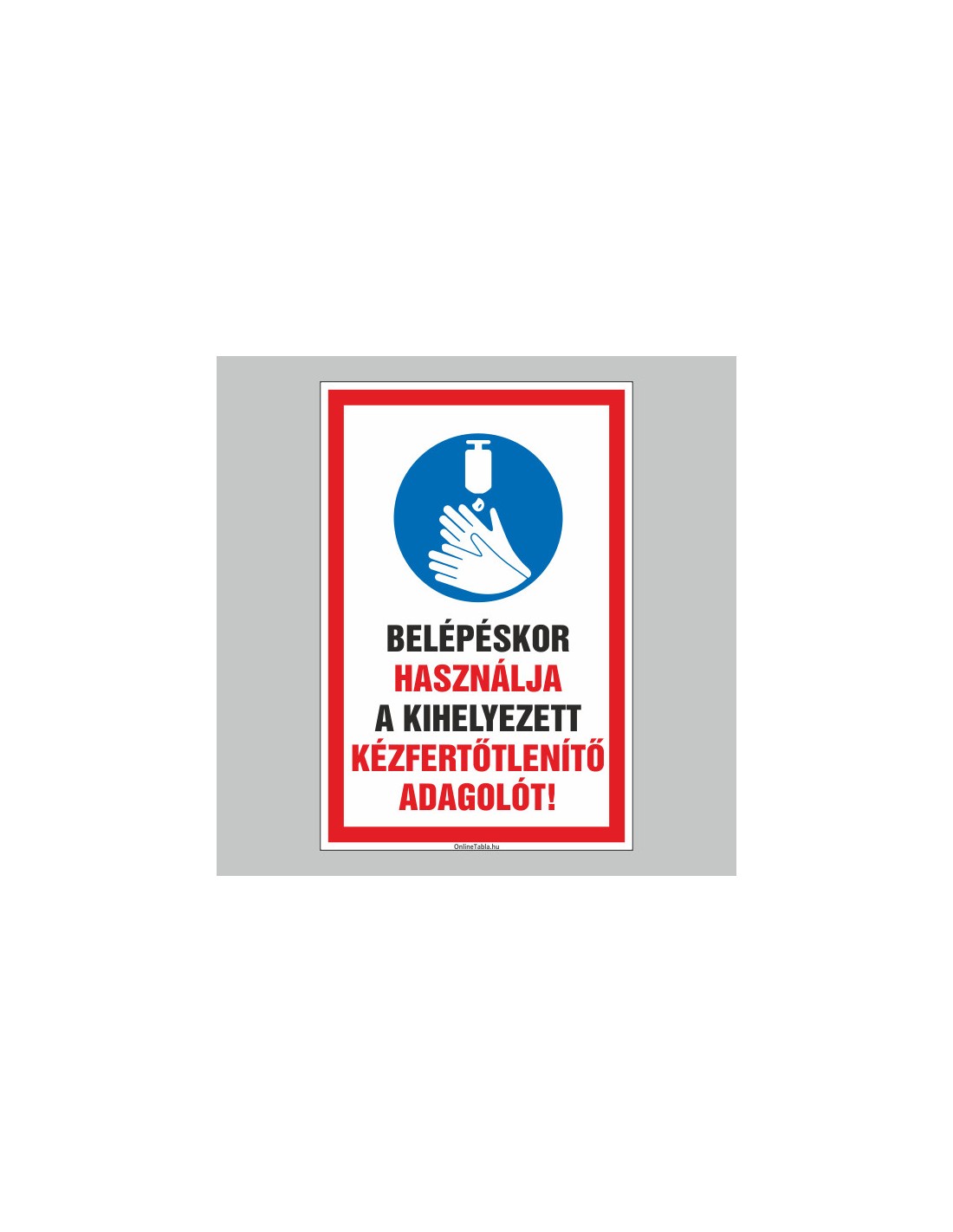 Figyelmeztető és tiltó matricák, táblák, - Koronavírus, Fertőzések tábla - BELÉPÉSKOR HASZNÁLJA A KIHELYEZETT KÉZFERTÕTLENÍTÕ AD