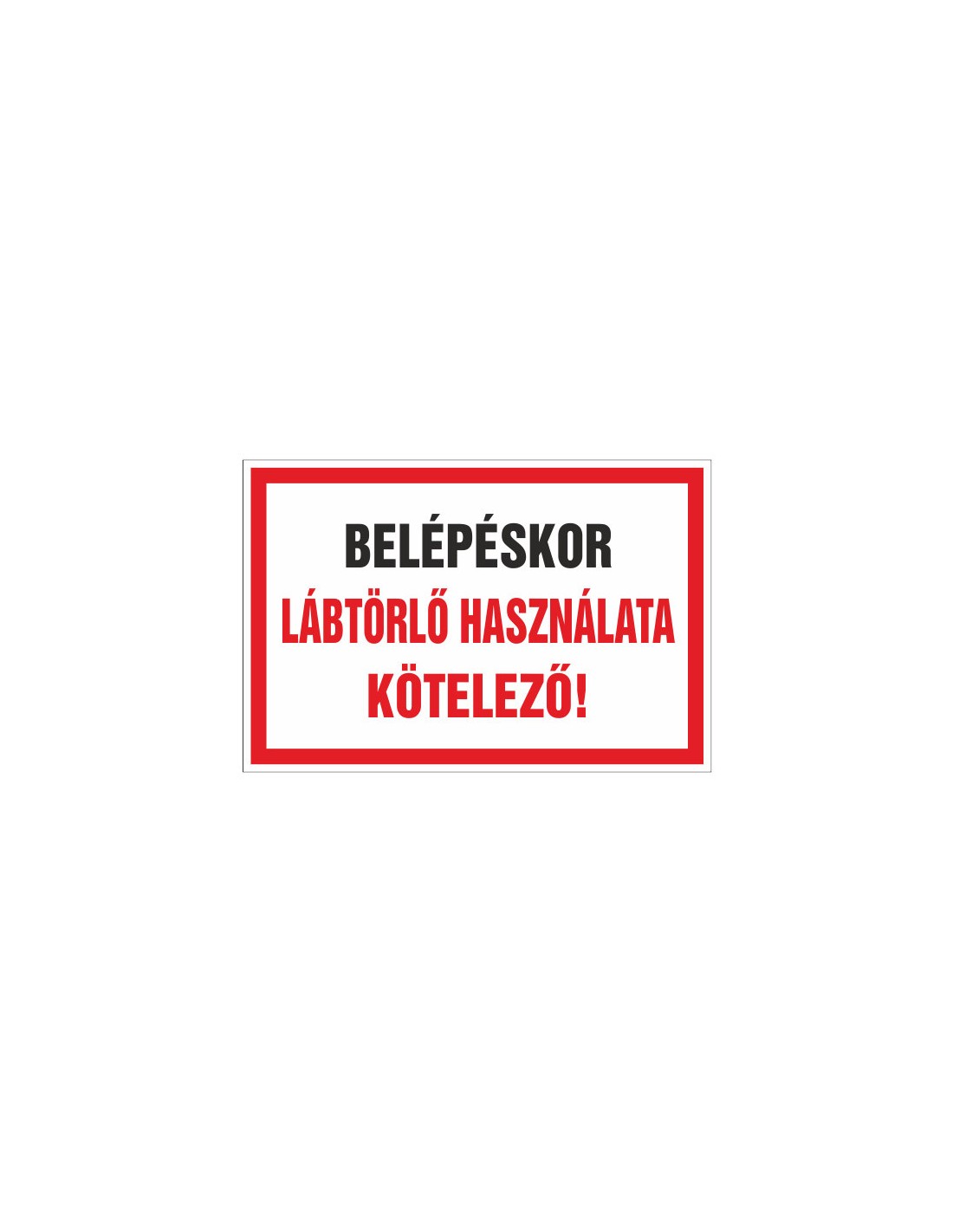 Belépéskor lábtörlő használata kötelező! tábla célja, hogy egyértelműen tájékoztassa a dolgozókat és látogatókat a lábtörlő használatának kötelezettségéről.