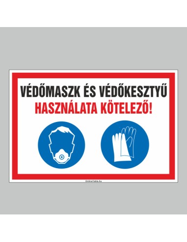 Figyelmeztető és tiltó matricák, táblák, - Koronavírus, Fertőzések tábla - VÉDÕMASZK ÉS VÉDÕKESZTYÛ HASZNÁLATA KÖTELEZÕ!