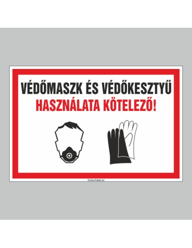 Figyelmeztető és tiltó matricák, táblák, - Koronavírus, Fertőzések tábla - VÉDÕMASZK ÉS VÉDÕKESZTYÛ HASZNÁLATA KÖTELEZÕ!
