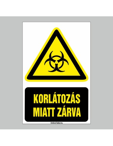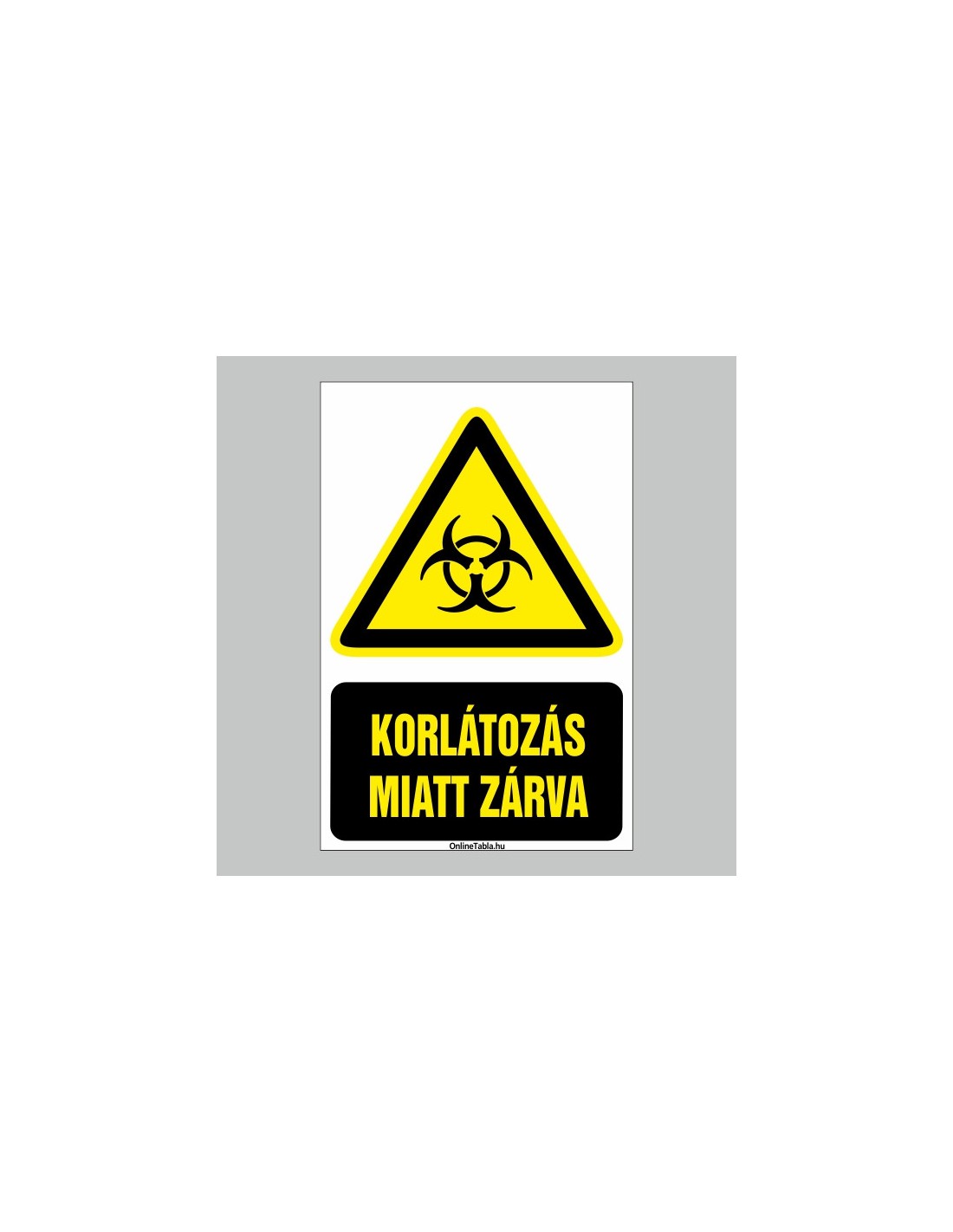 Figyelmeztető és tiltó matricák, táblák, - Koronavírus, Fertőzések tábla - KORLÁTOZÁS MIATT ZÁRVA!