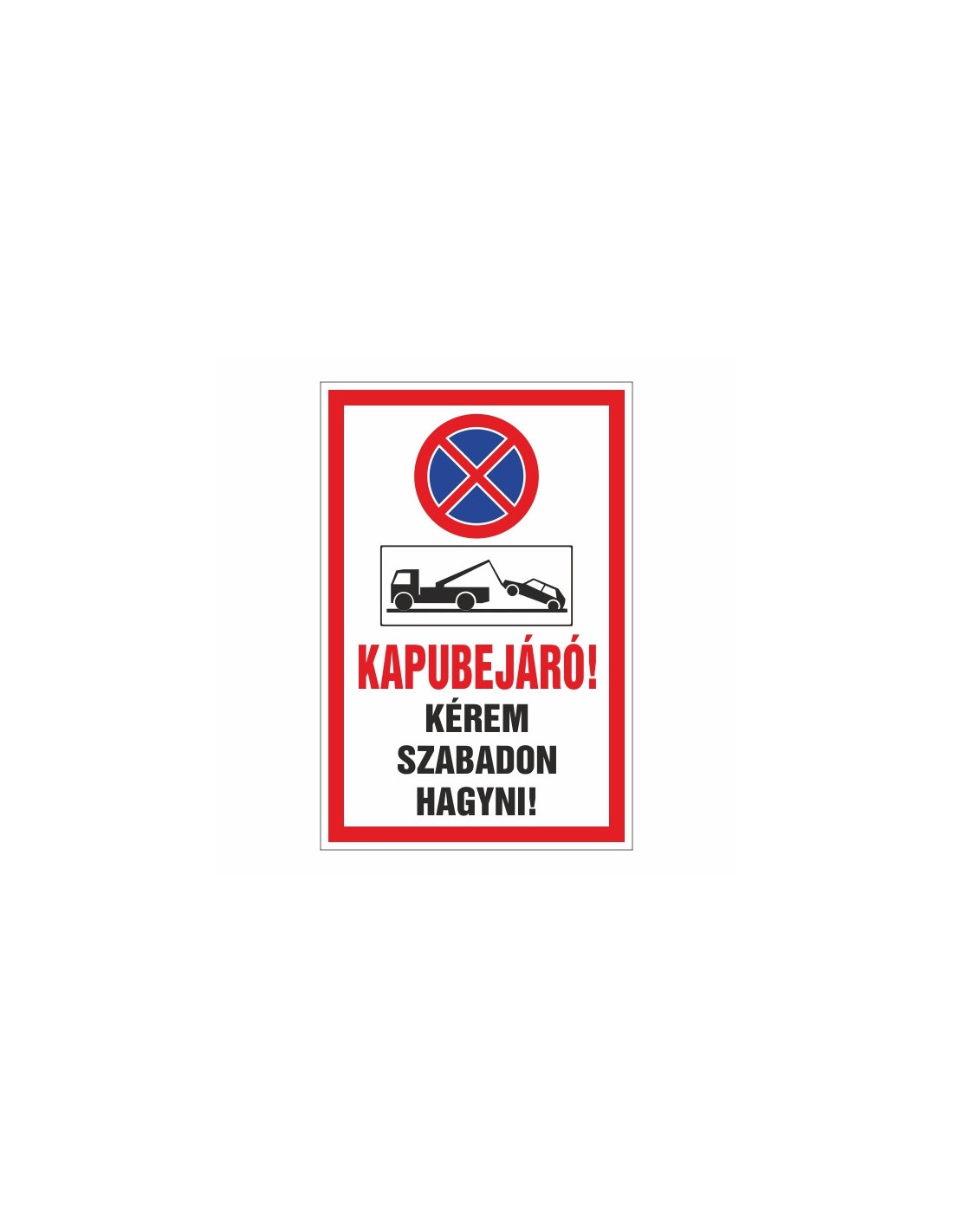 A Kapubejáró! Kérem szabadon hagyni! tábla a parkolóhelyek és kapubejárók akadálytalan használatát segíti elő. Többféle anyagból és méretben elérhető.