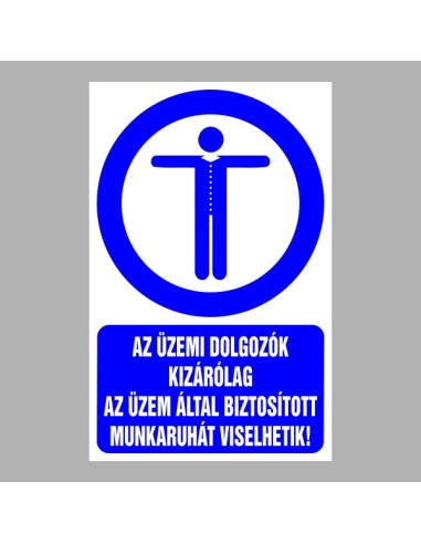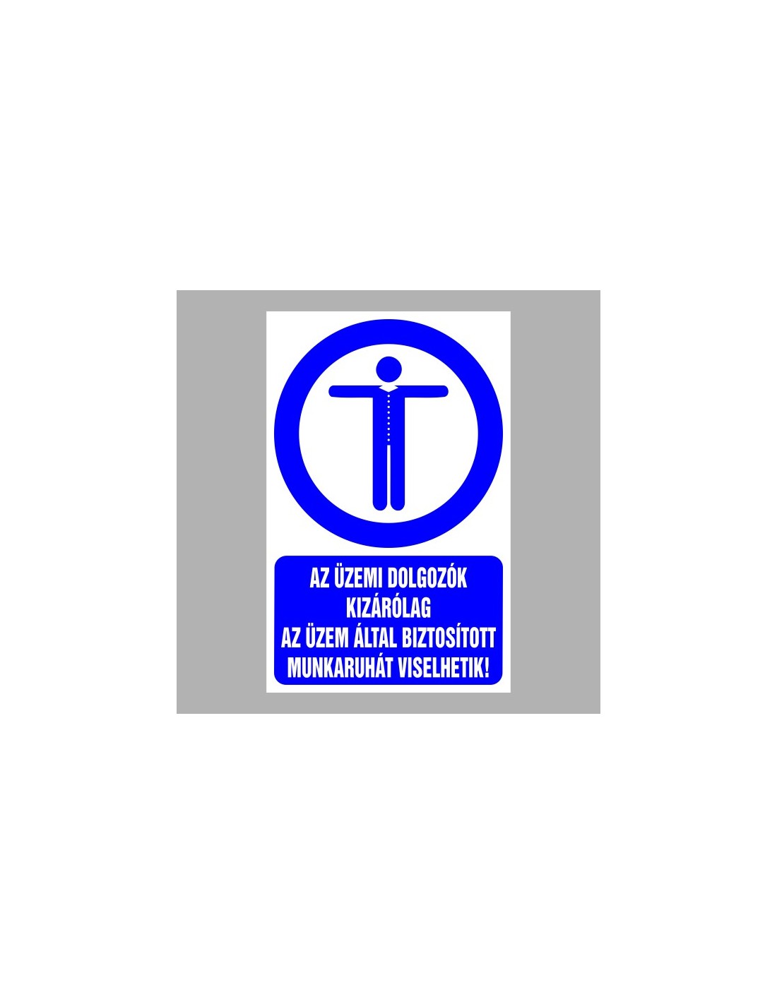 Rendelkező matricák, táblák, jelek, piktogramok, - Piktogramok szöveggel - AZ ÜZEMI DOLGOZÓK KIZÁRÓLAG AZ ÜZEM ÁLTAL BIZTOSÍTOTT
