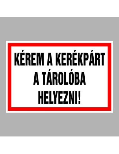 Figyelmeztető és tiltó matricák, táblák, - Tájékoztató táblák - Kérem a kerékpárt a tárolóba helyezni!