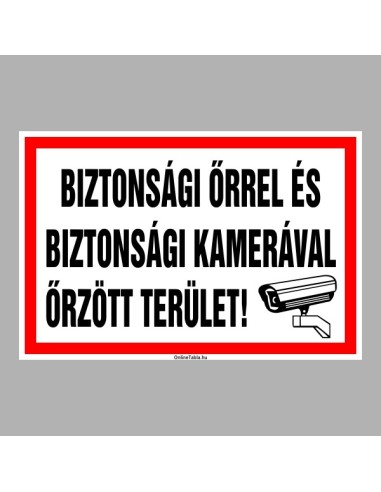 Figyelmeztető és tiltó matricák, táblák, - Tájékoztató táblák - BIZTONSÁGI ŐRREL ÉS  BIZTONSÁGI KAMERÁVAL ŐRZÖTT TERÜLET!