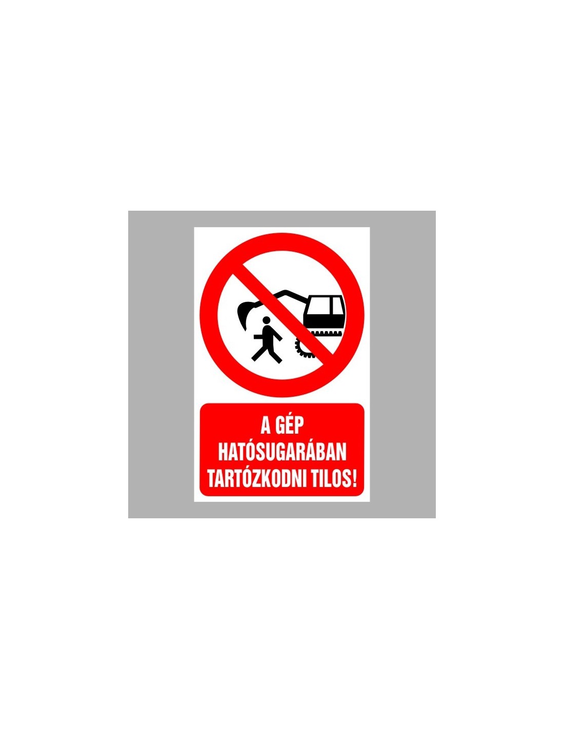 Tiltó matricák, táblák, jelek, piktogramok, - Piktogramok szöveggel - A gép hatósugarában tartózkodni tilos!