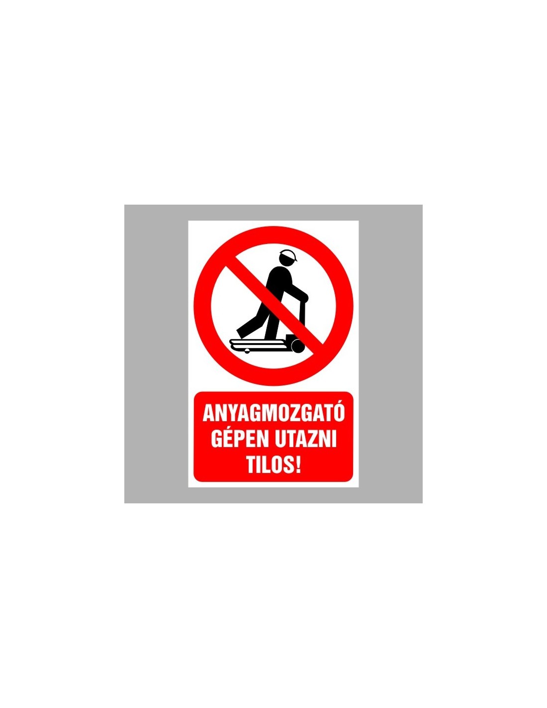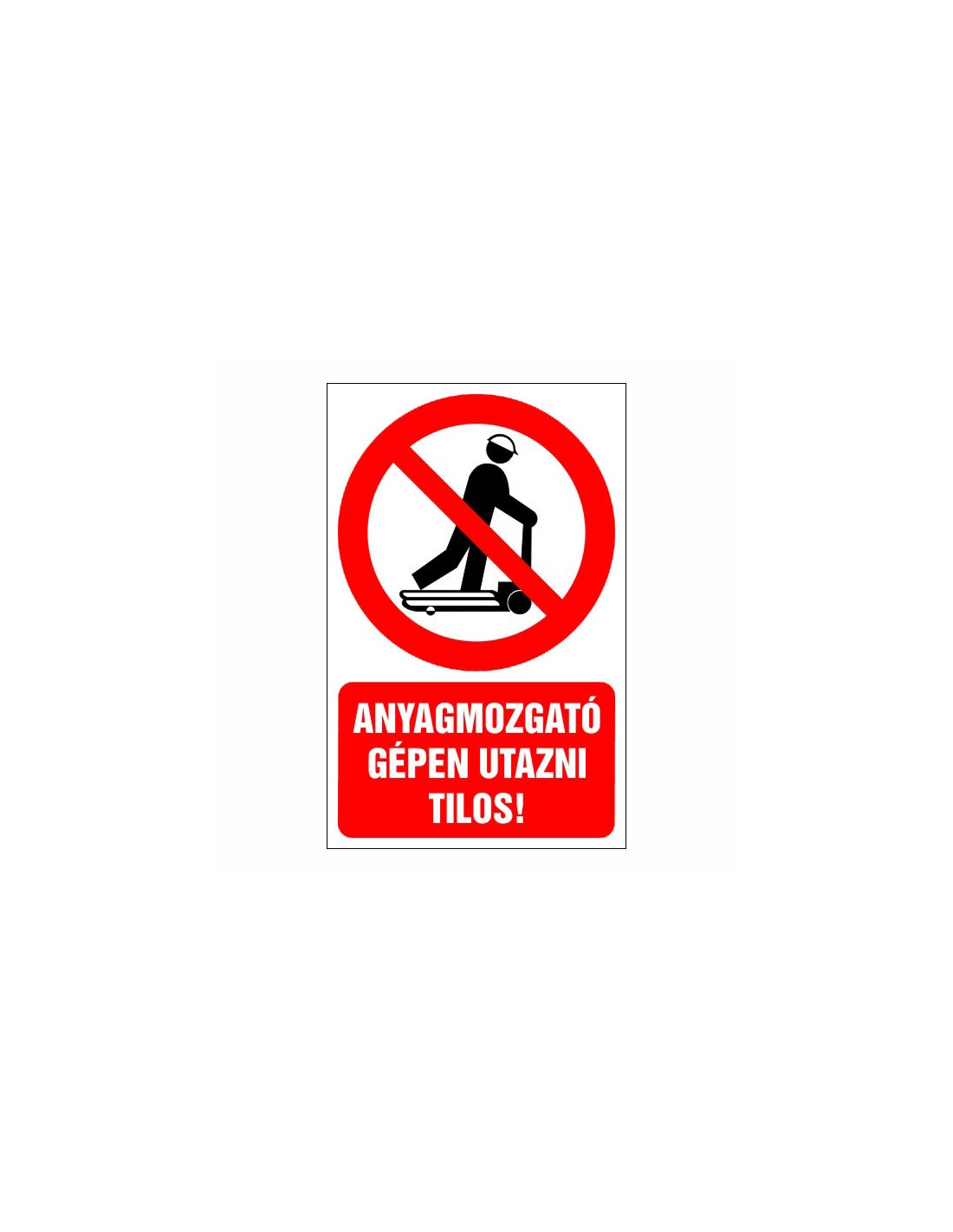 Tiltó matricák, táblák, jelek, piktogramok, - Piktogramok szöveggel - Anyagmozgató gépen utazni tilos!