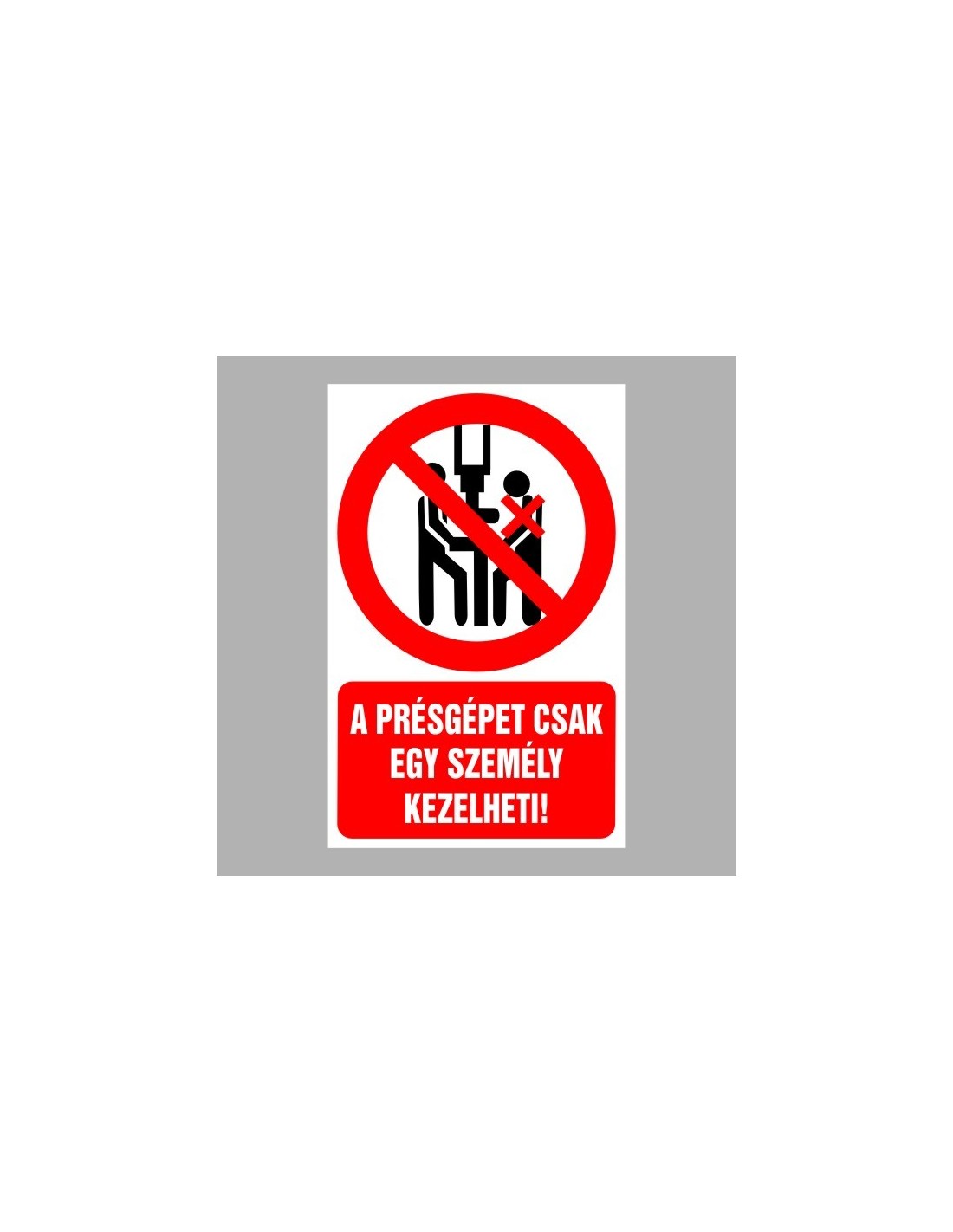 Tiltó matricák, táblák, jelek, piktogramok, - Piktogramok szöveggel - A présgépet csak egy ember kezelheti!