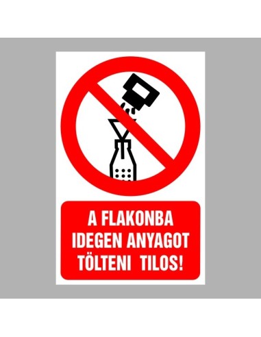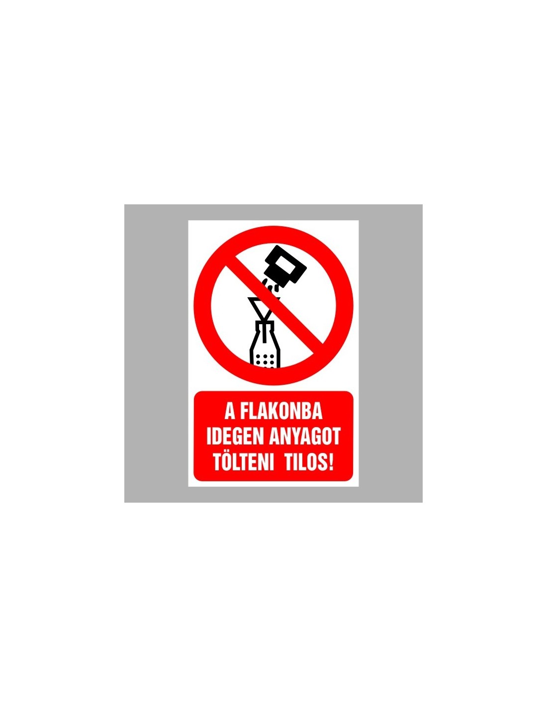 Tiltó matricák, táblák, jelek, piktogramok, - Piktogramok szöveggel - A flakonba idegen anyagot tölteni tilos!
