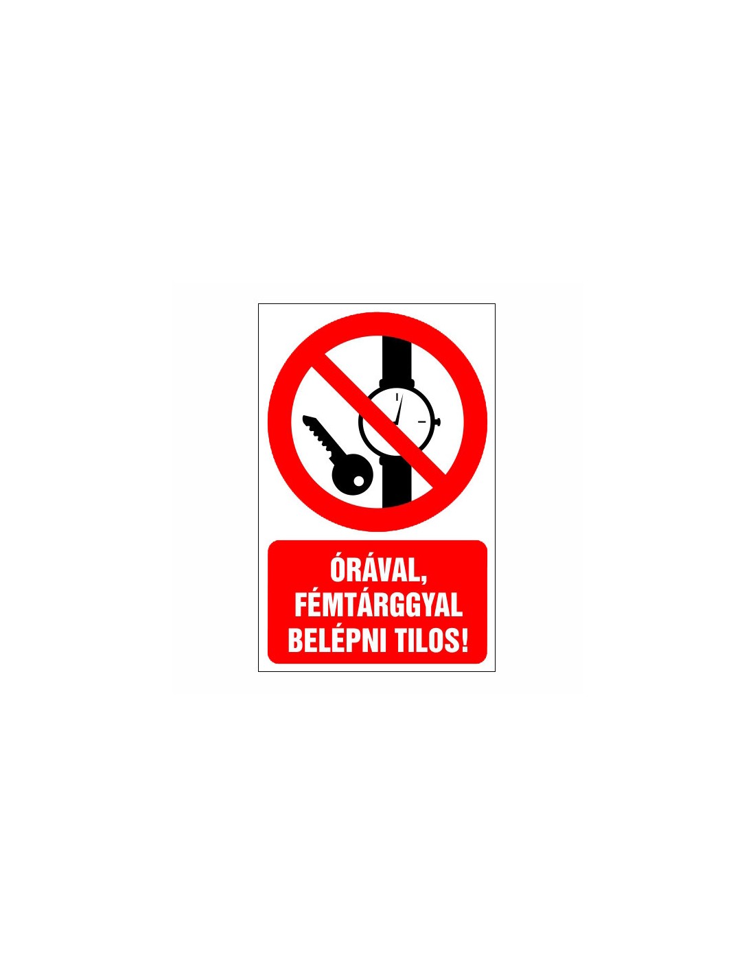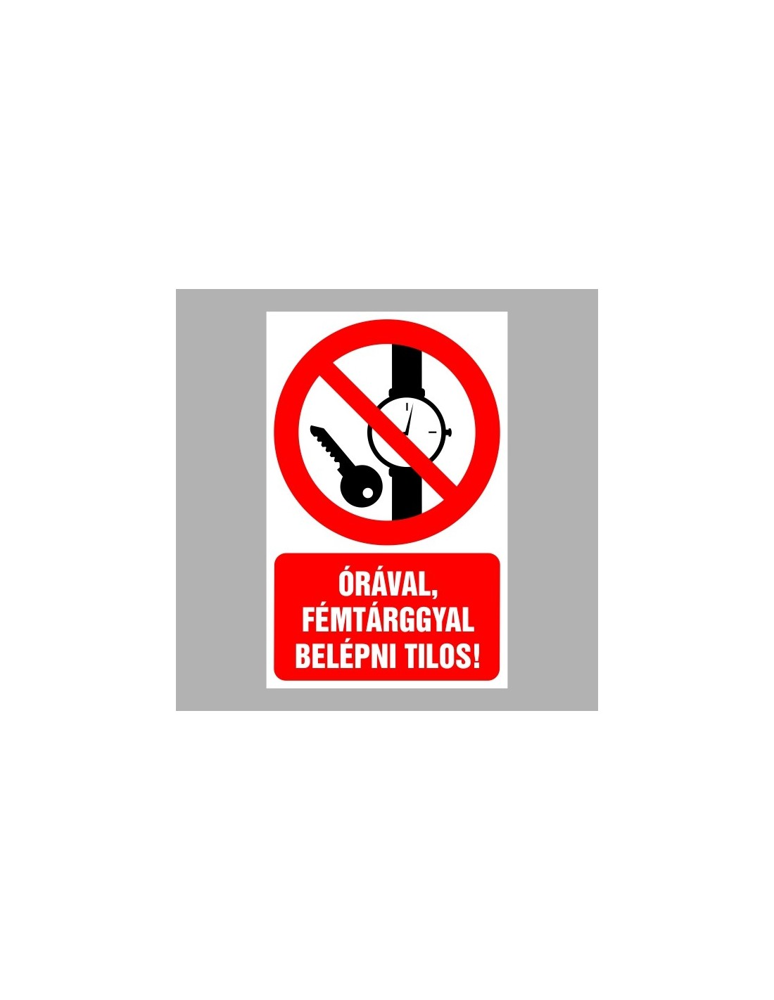 Tiltó matricák, táblák, jelek, piktogramok, - Piktogramok szöveggel - Órával, fém tárggyal belépni tilos!