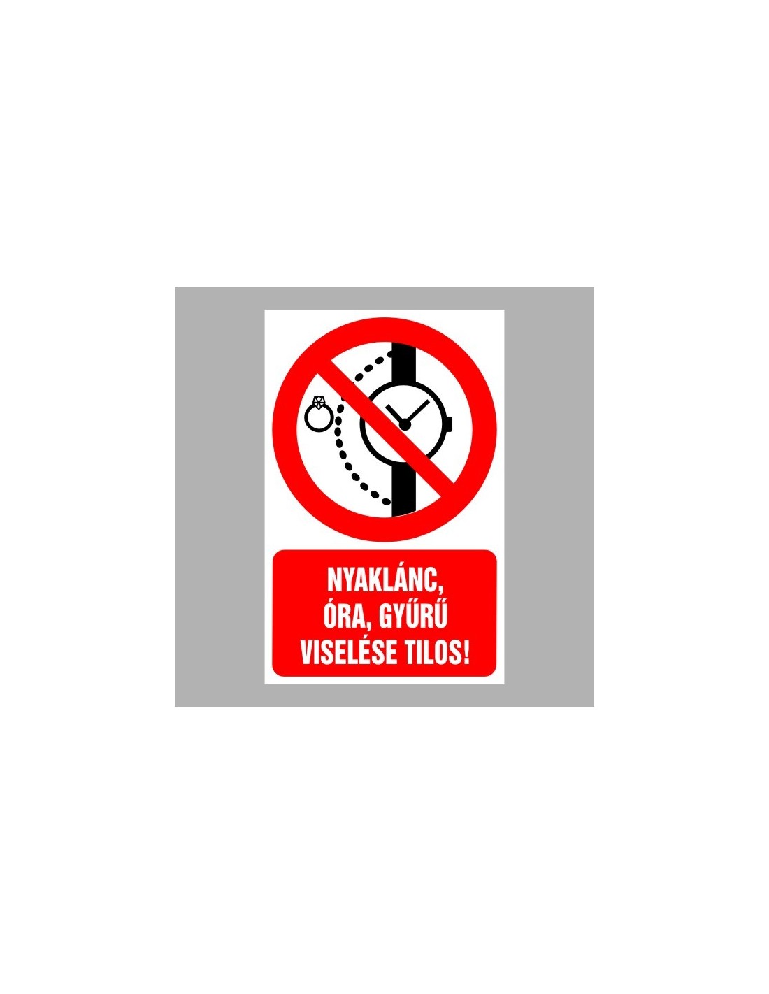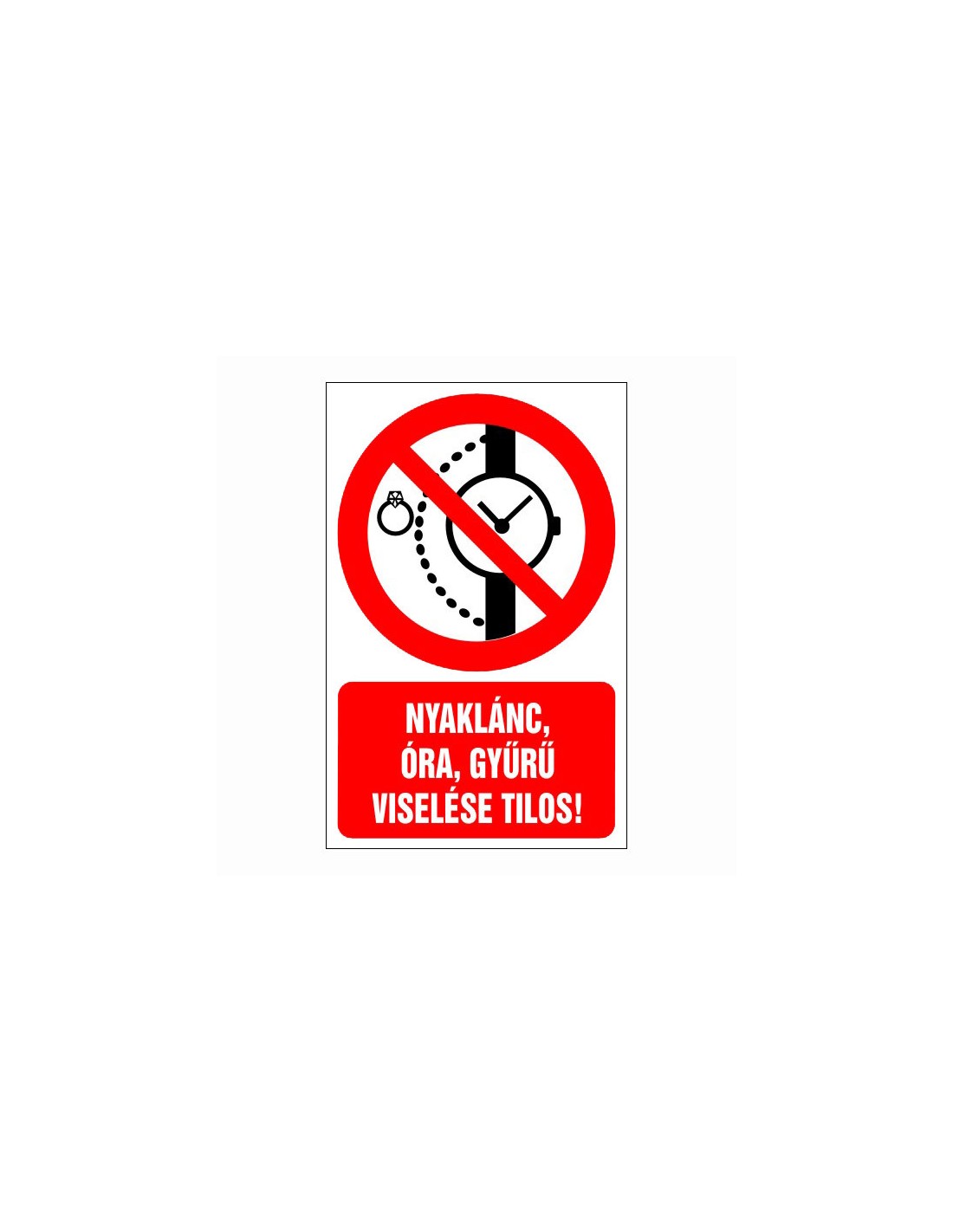 Tiltó matricák, táblák, jelek, piktogramok, - Piktogramok szöveggel - Nyaklánc, óra, gyűrű viselése tilos!