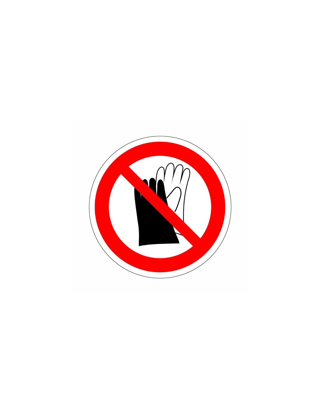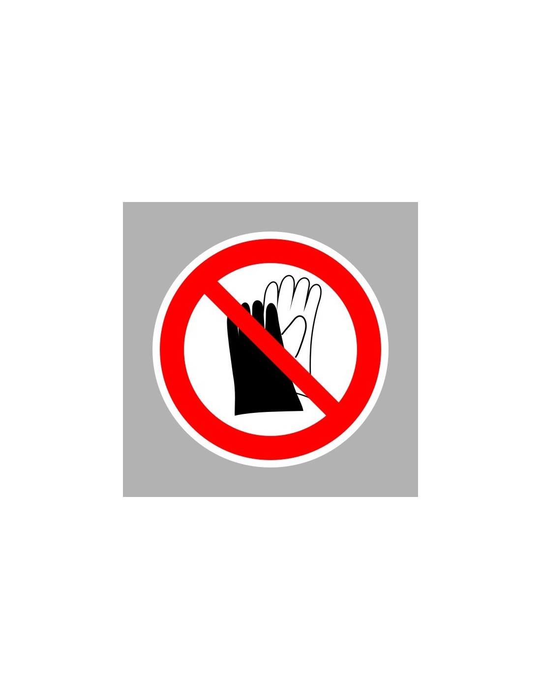 A piktogram egyértelműen jelzi a védőkesztyű használatának tilalmát. Több méretben és öntapadós vinil anyagból elérhető.