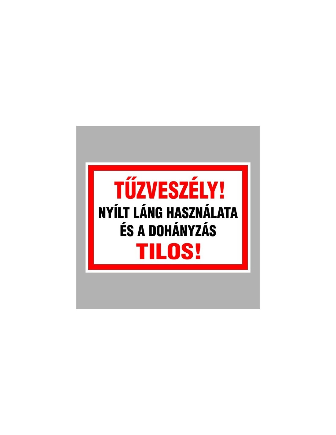 A tűzveszély! tábla egyértelműen jelzi a nyílt láng használatának és dohányzásnak a tilalmát. Többféle anyagból és méretben elérhető.