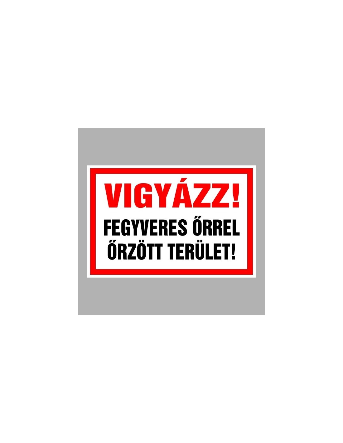 Figyelmeztető és tiltó matricák, táblák, - Veszélyre figyelmeztető táblák - Vigyázz! Fegyveres őrrel őrzött terület!