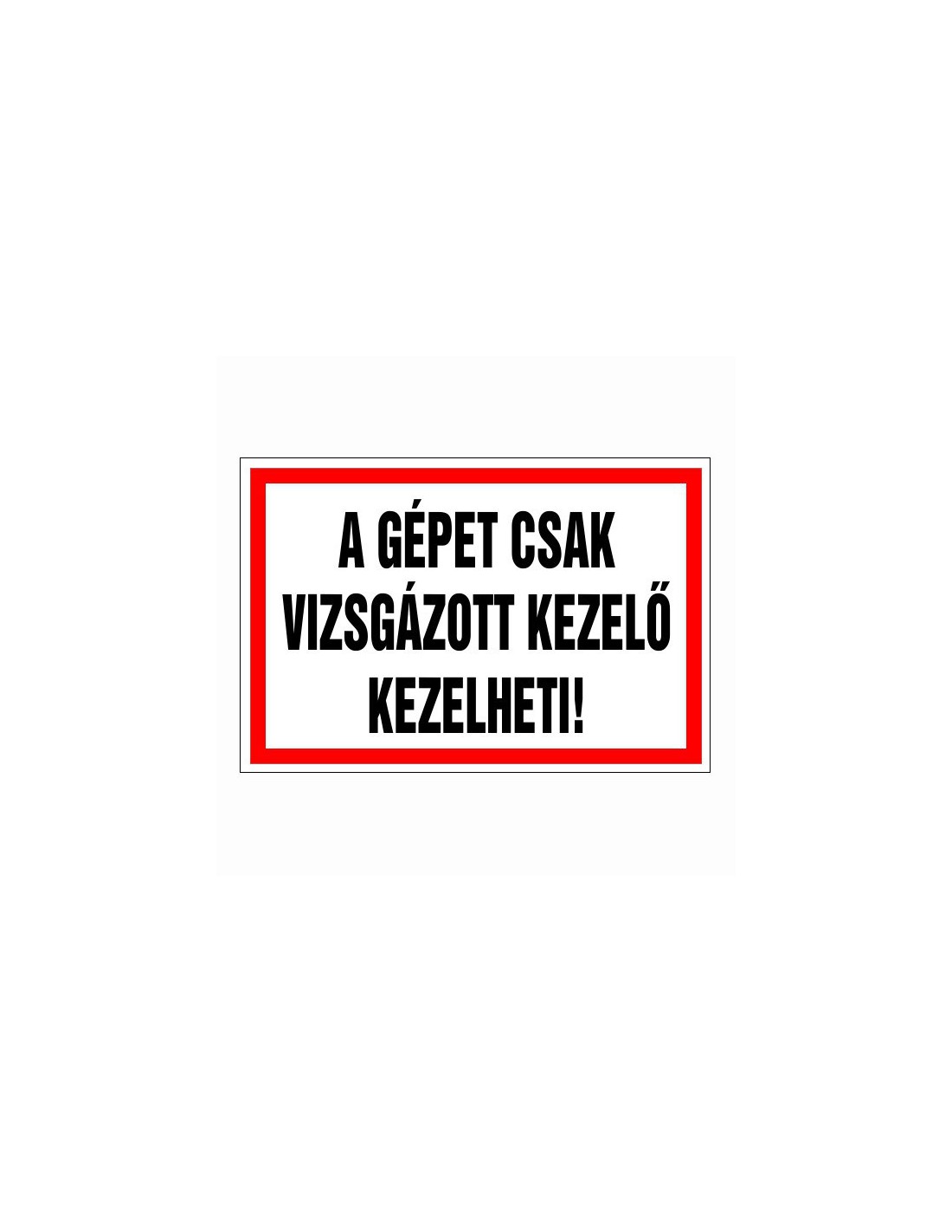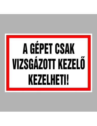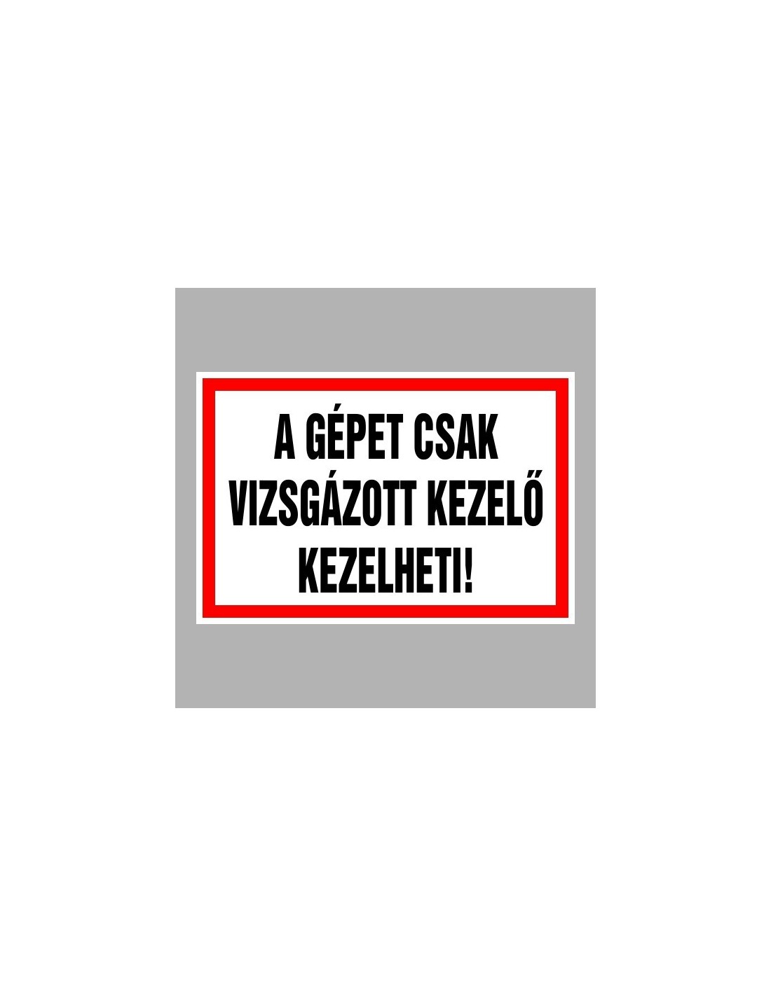 Figyelmeztető és tiltó matricák, táblák, - Veszélyre figyelmeztető táblák - A gépet csak vizsgázott kezelő kezelheti!