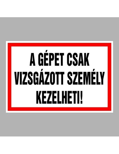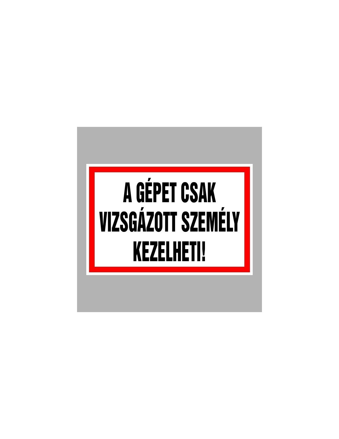 Figyelmeztető és tiltó matricák, táblák, - Veszélyre figyelmeztető táblák - A gépet csak vizsgázott személy kezelheti!