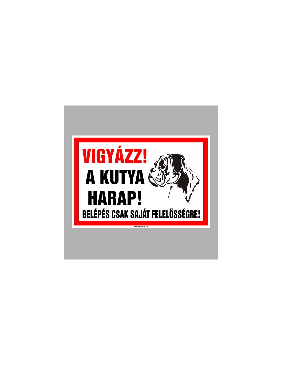 Vigyázz! A kutya harap! Belépés csak saját felelősségre! tábla célja, hogy figyelmeztesse a belépőket a kutyaharapás veszélyére. Többféle alapanyagból készül, például öntapadós vinil, műanyaglemez, horganyzott lemez és szendvicslemez, így különböző környezetekben alkalmazható.