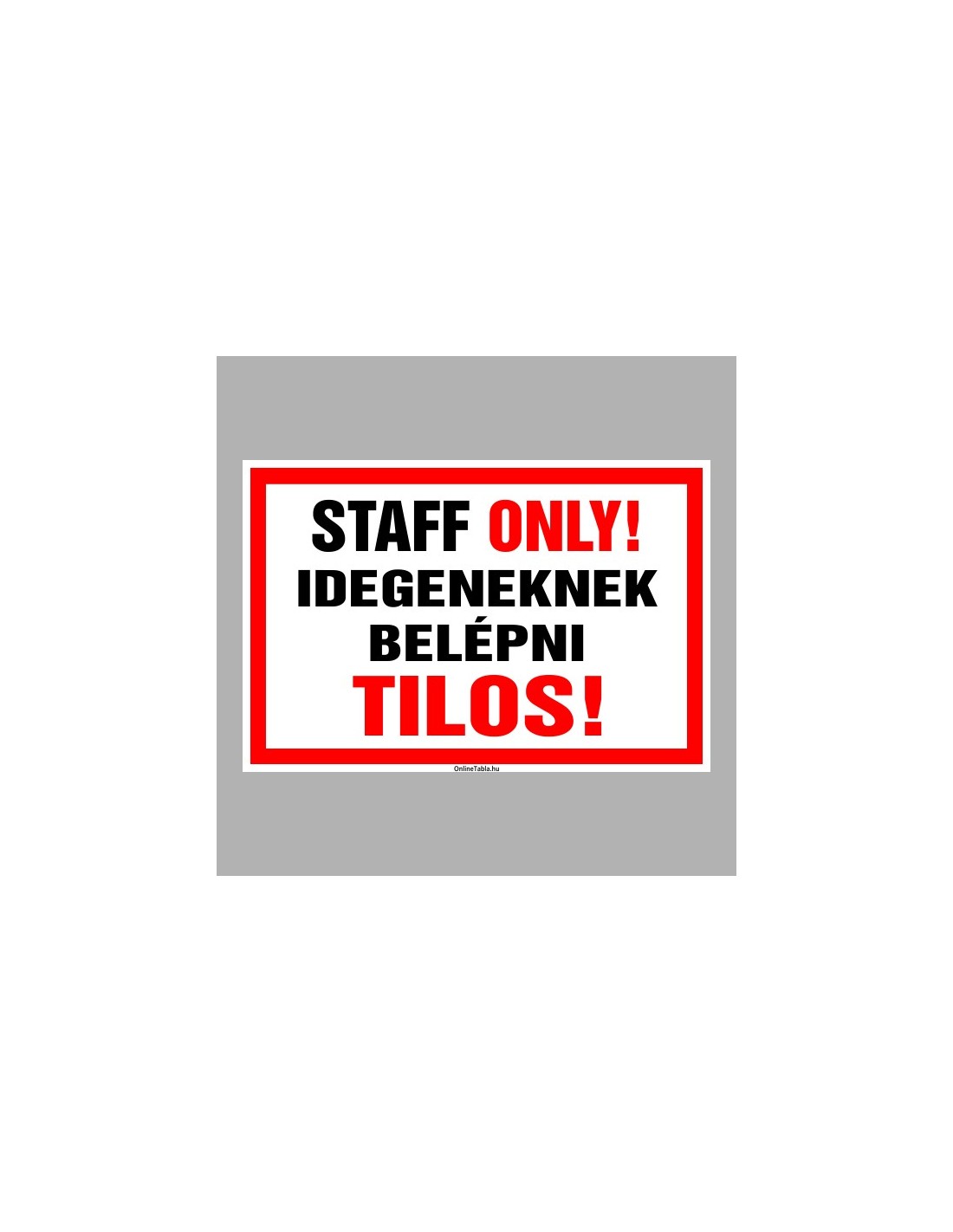 Figyelmeztető és tiltó matricák, táblák, - Veszélyre figyelmeztető táblák - STAFF ONLY! Idegeneknek belépni Tilos!