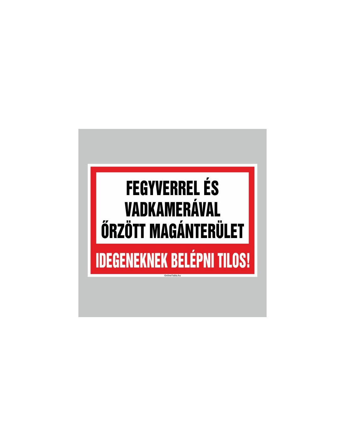 Figyelmeztető és tiltó matricák, táblák, - Veszélyre figyelmeztető táblák - FEGYVERREL ÉS VADKAMERÁVAL ÕRZÖTT MAGÁNTERÜLET! IDEG