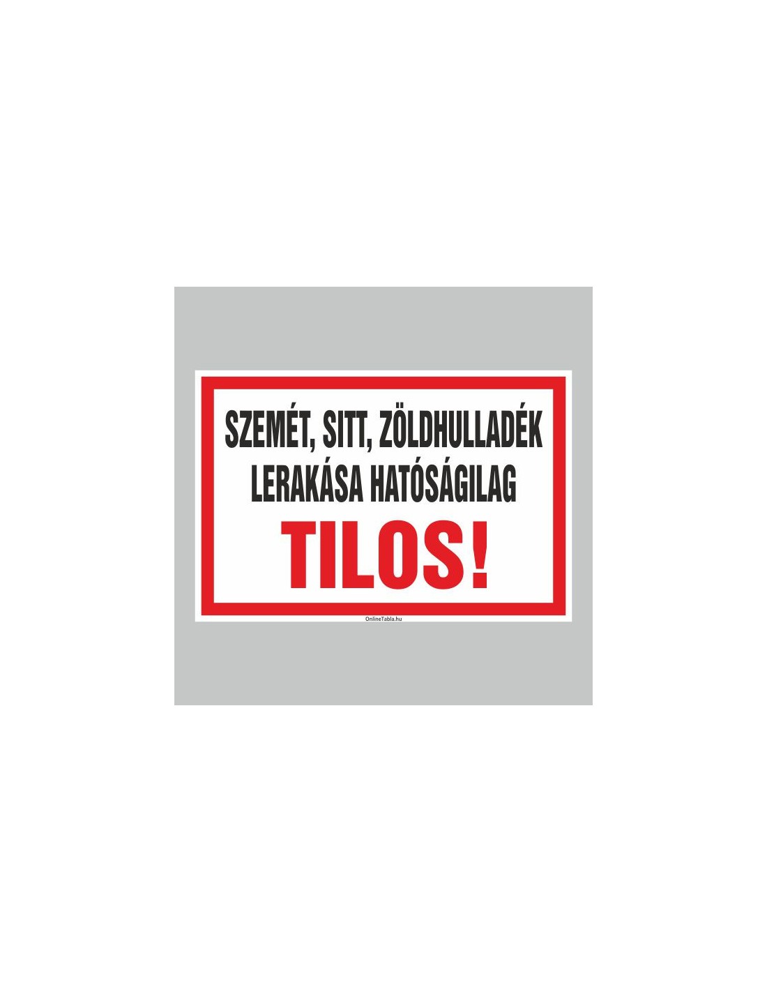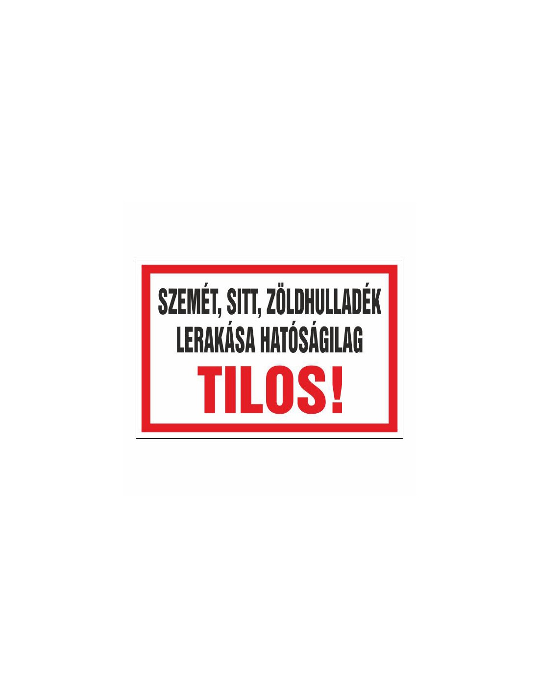 Figyelmeztető és tiltó matricák, táblák, - Veszélyre figyelmeztető táblák - SZEMÉT, SITT, ZÖLDHULLADÉK LERAKÁSA HATÓSÁGILAG TILO