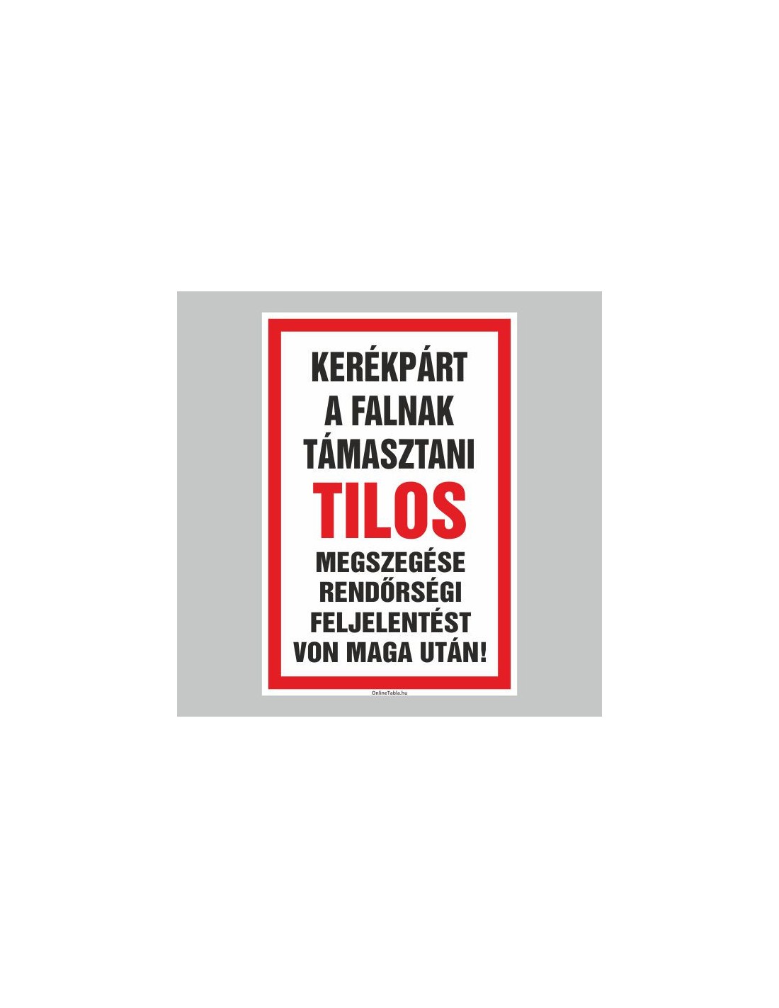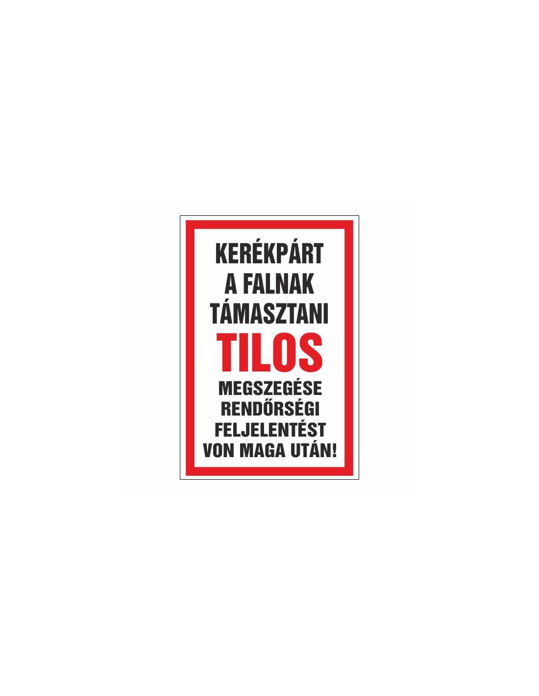 Figyelmeztető és tiltó matricák, táblák, - Veszélyre figyelmeztető táblák - KERÉKPÁR A FALNAK TÁMASZTANI TILOS! MEGSZEGÉSE RENDÖ