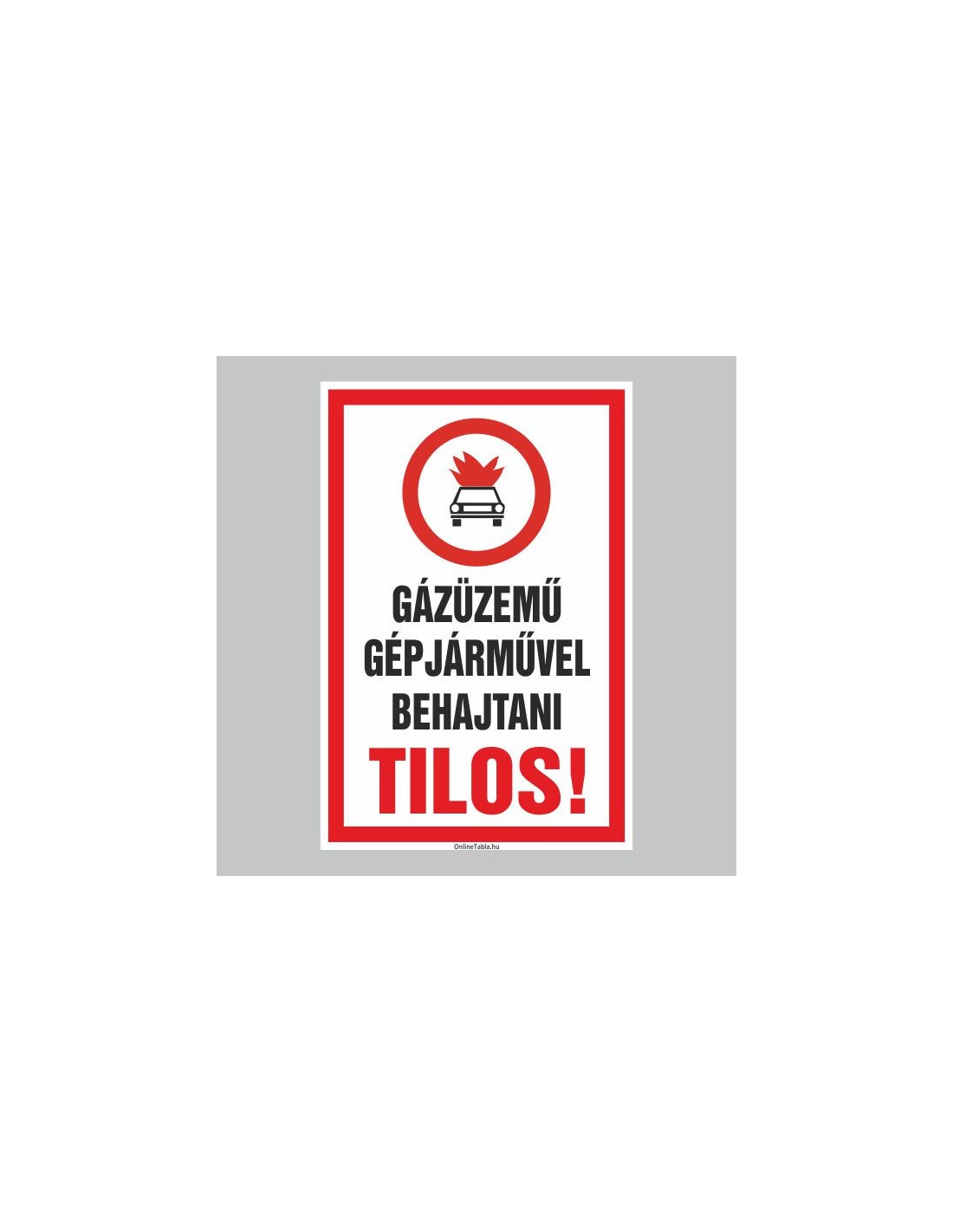 Figyelmeztető és tiltó matricák, táblák, - Veszélyre figyelmeztető táblák - GÁZÜZEMÛ GÉPJÁRMÛVEL BEHAJTANI TILOS!