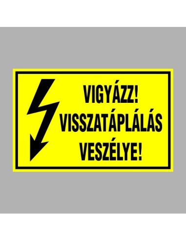 Villamossági, érintésvédelmi matricák, táblák, jelek, piktogramok - VIGYÁZZ! VISSZATÁPLÁLÁS VESZÉLYE!