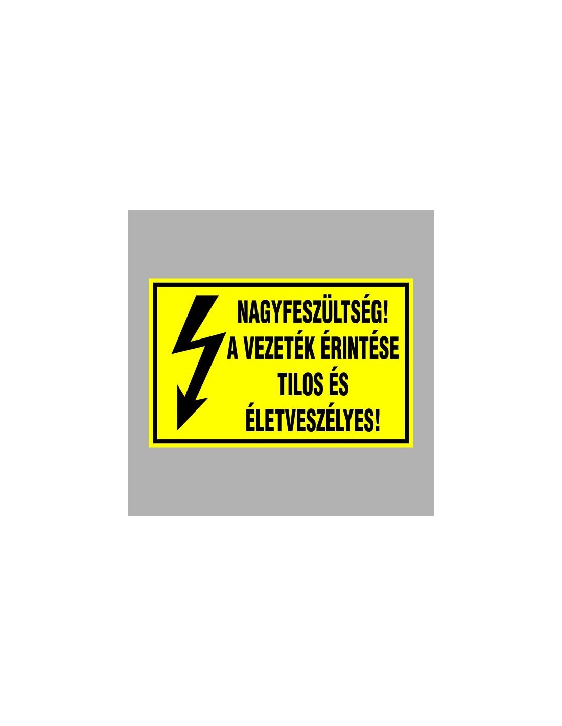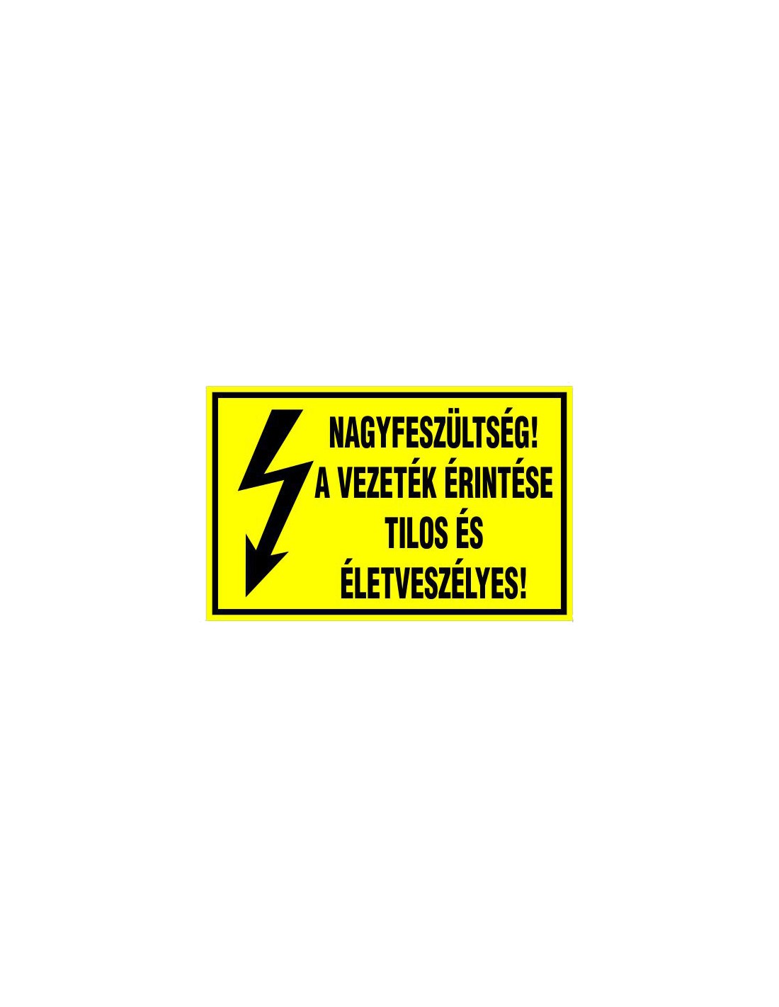 A felirat figyelmeztet a nagyfeszültség veszélyére és az érintés tilalmára. Többféle anyagból és méretben elérhető.
